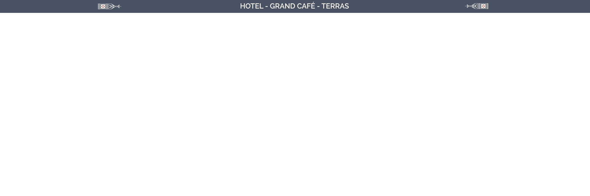 Im Grand Café oder auf unserer Terrasse können Sie zu Mittag und Abend essen oder etwas trinken. Sie sind auch willkommen für eine köstliche Tasse Kaffee, dann probieren Sie auf jeden Fall unsere hausgemachten Kuchen. Sie werden sich an unserer wunderschönen Lage nicht langweilen! Die Sonne ist den ganzen Tag auf unserer Terrasse präsent.
